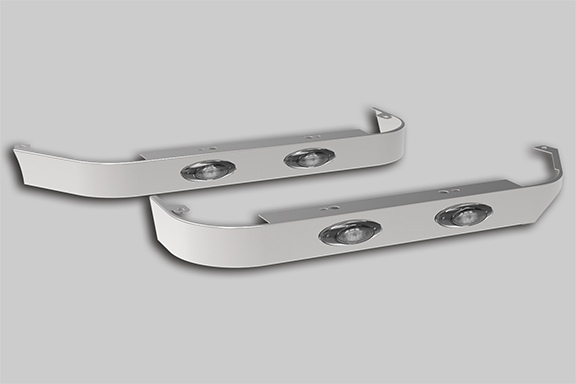 These sleeper panels are designed for 2024+ Kenworth T680, T880, W990 with cab exhaust. For 40″ sleepers. Sold in pairs, each of the panels have M5 amber clear LED (2). Uses hardware from the truck for installation. Lites and harnesses included.