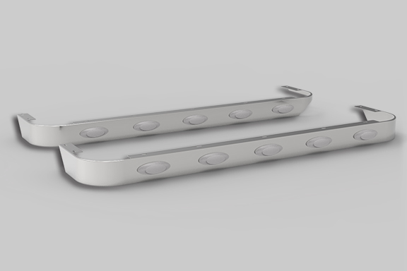 These sleeper panels are designed for 2024+ Peterbilt 567 & 579 models with cab exhaust. Designed to fit models with 58″ sleepers. Sold in pairs, each of the panels have M5 amber clear LED (5). Hardware, lites and harnesses included. Drilling required for installation.
